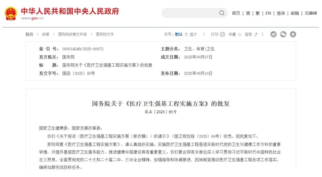 近日,国务院正式批复《医疗卫生强基工程实施方案》(以下简称《方案》),标志着我国基层医疗卫生体系建设进入加速推进阶段。该方案基调明确:加快推动从以治病为中心向以人民健康为中心转变,不断增强人民群众的健康获得感、幸福感与安全感。方案的提出,旨在加强医疗卫生体系的基础能力,提升基层服务水平,让群众就近就便享有优质、高效、便捷的医疗卫生健康服务。