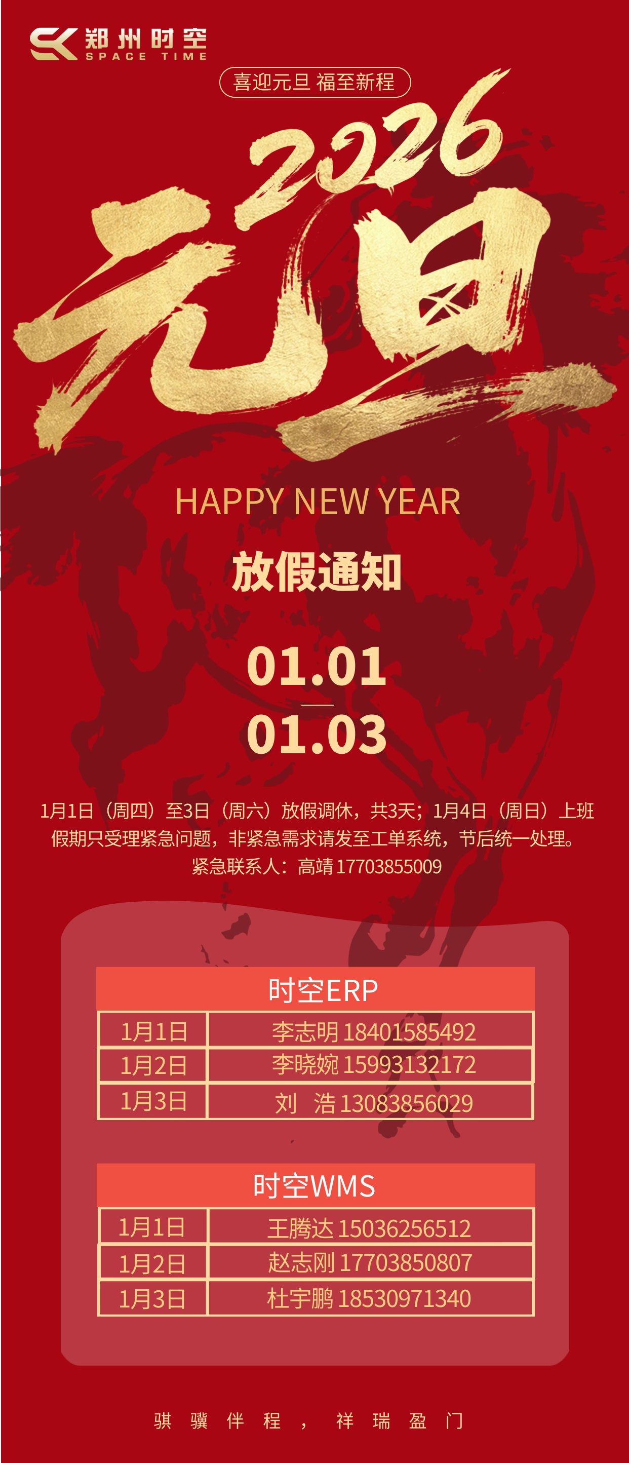 郑州时空元旦值班表